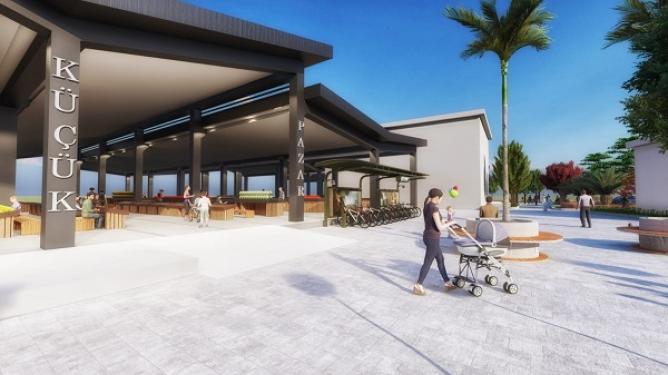 Küçük Pazar Yeri Projesi’nde, Hasan Aslan Caddesi ve Lise Caddesi’ndeki giriş çıkışlar; mevcut düzendeki trafik sıkışıklığına çözüm üretecek şekilde düzenlenmiş ve otoparkla desteklenmiş şekilde oluşturuldu.