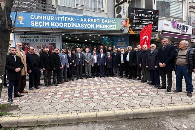 AK Parti Genel Başkan Yardımcısı ve Yerel Yönetimler Başkanı Yusuf Ziya Yılmaz, Cumhur İttifakı Bafra Belediye Başkan Adayı Hamit Kılıç, AK Parti İlçe Başkanı İbrahim Semiz ile seçim çalışmalarının yürütüldüğü Bafra Seçim Koordinasyon Merkezi’ni ziyaret ederek teşkilat mensupları ile buluştu.