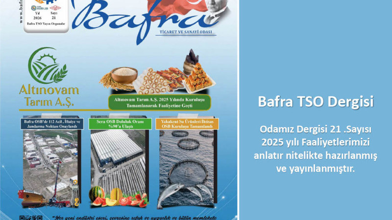 Bafra TSO Dergisi’nin 21. sayısının yayımlandığını belirten Kocabaş, “Yöresel Lezzetler” özel yayınıyla Bafra, 19 Mayıs, Alaçam ve Yakakent’in gastronomi değerlerinin tanıtıldığını ifade etti.