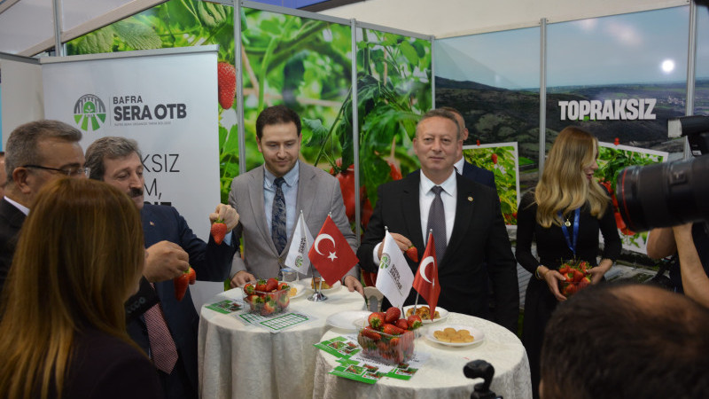 Fuarda, Bafra Sera Organize Tarım Bölgesi’nde üretilen çilekler misafirlere ikram edildi. Yapılan ikram, protokol üyeleri tarafından büyük beğeni topladı. Yetkililer, Bafra’da yürütülen projelerden duydukları memnuniyeti dile getirerek, çalışmaların bölge kalkınması açısından önemine dikkat çekti.