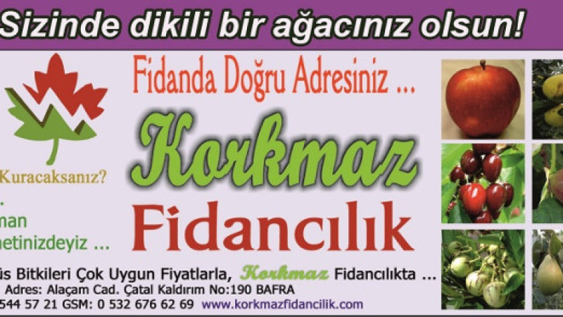 Korkmaz Fidancılık, Samsun’un Bafra ilçesi Çatal Kaldırım Mevkii’nde faaliyet gösteriyor.
