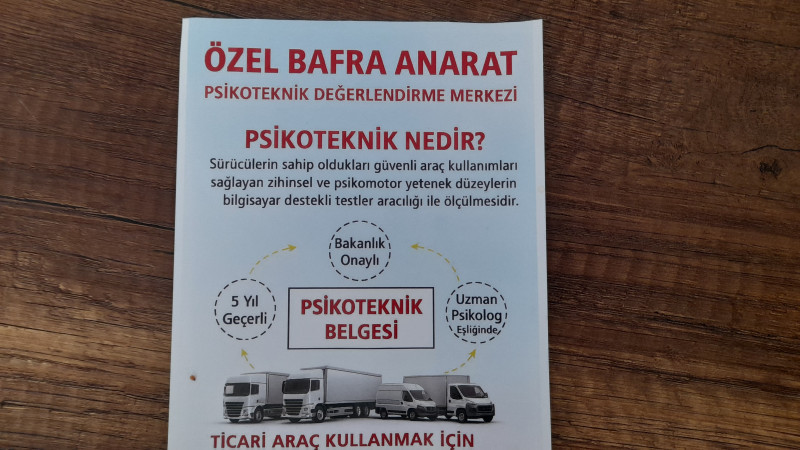 SAMSUN – Bafra Psikoteknik Değerlendirme Merkezi İşletme Sahibi Psikolog Emre Anarat, ticari araç sürücülerini psikoteknik belgesi konusunda uyardı.